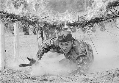 7月29日,秦皇岛边防检查站特勤队的战士在进行跨越火线的训练。
