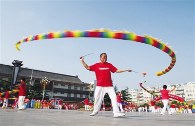 近年来,我市体育基础设施建设稳步推进。投入资金对老城体育中心进行了大规模维修改造。投入195万元为100个行政村,7个乡镇街道、18个社区配置了健身器材,农民体育健身工程覆盖了2469个村庄。配合省里在全市123个行政村完成了“千村扶贫健身工程”地基硬化工作。积极申报2013年国家、省级体育彩票公益金资助全民健身工程项目和农民体育健身工程项目。目前全市有三个(区)市建有县级全民健身中心,峄城区全民健身中心正在施工,山亭区“雪碳工程”已经启动,37个乡镇(街道)建有全民健身活动中心,218个社区建有健身场地。图为启动仪式上的空竹表演。