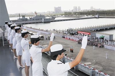 8月8日上午,中国海军第十五批护航编队从湛江某军港起航,奔赴亚丁湾、索马里海域执行护航任务。