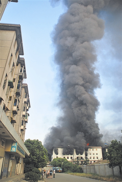 8月16日早上,巢湖市皖维集团发生火灾的厂房浓烟滚滚。8月15日23时左右,安徽省巢湖市皖维集团一分厂突发大火,到16日早晨7时,多层厂房被大火吞噬,现场浓烟滚滚,救援工作仍然在紧张进行中。截至目前,伤亡人数不详,火灾原因仍在调查中。