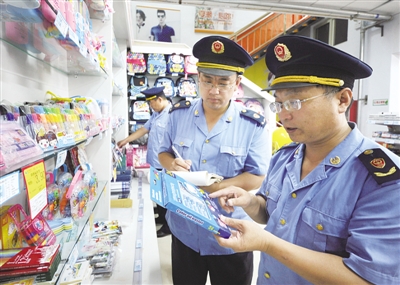 新学期临近,我市各区(市)工商部门积极行动起来,组织执法人员对辖区内中小学校周边的文具用品商店进行专项检查,严厉打击销售假冒伪劣文具的违法行为,为学生营造一个放心、安全的消费环境。 (李宗宪 王勇 摄)