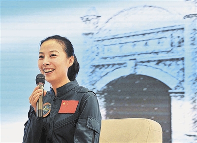 9月1日,在北京师范大学附属中学,王亚平与学生交流。
