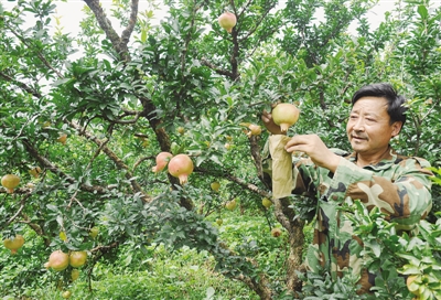 眼下,冠世榴园石榴已进入管理的关键期,果农们正针对今年天气先涝后旱的实际,积极采取有效措施,进一步加强石榴树的秋季管理,确保石榴增产果农增收。图为榴园镇贾泉村果农对石榴进行套袋管理。 (孙启路 孙伟 摄)