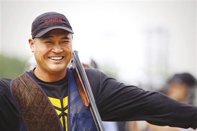 今年45岁的射击运动员张永杰已是全运会的“七朝元老”。这是2013年9月2日,山东选手张永杰夺得第十二届全运会射击项目男子飞碟多向比赛冠军后。 (新华社发)