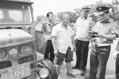 秋收即将开始。连日来,市中区农机、交警部门联合开展秋季安全生产大检查。执法人员深入到村组、田间地头、农机户家中,对拖拉机、联合收割机进行安全检查,并对重点路段和拖拉机事故多发路段加强巡查,确保秋季农机安全生产。 (记者 张晶 摄)