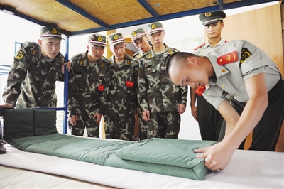 图为班长在教新兵整理内务。 (记者 赵宁 摄)