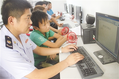 近期,团市委在全市共青团组织中开展了“青春相约走基层”活动,他们通过“青春微陪伴”、“小荷计划”、“七彩课堂”等公益活动,为青少年提供课业辅导、生活照料、心理咨询等服务。图为青年志愿者在冯卯镇留守儿童关爱中心教留守儿童学习电脑。 (李萍 摄)