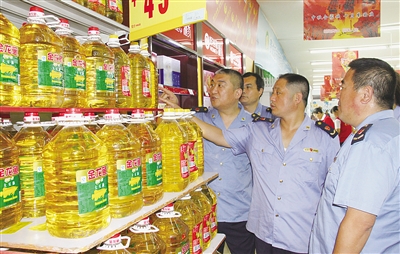 中秋、国庆两大节日临近,为保障节日期间食品市场消费安全,维护食品市场秩序,我市工商部门集中开展了以粮、油、肉、月饼、奶制品、饮料、酒类等为重点的节日市场专项执法检查,确保上市食品质量安全,老百姓放心消费。 ( 张冬磊 摄 )