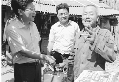 →9月17日,市科协工作人员带着大米、面、食用油等慰问品,来到帮扶的薛城区沙沟镇张庄村走访看望8位老党员、贫困户,为他们送去节日的温暖和关爱。 (记者 张晶 摄)