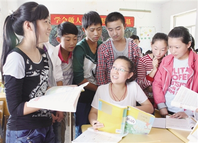 9月24日,山亭区凫城镇焦山村大学生村官在枣庄二十四中和学生交流英语口语。今年以来,山亭团区委在全区开展了大学生村官和机关青年干部爱心支教活动,组织他们走进农村学校,用轻松愉快的方式为孩子们讲课、开展文体活动等,受到师生和家长的欢迎。 (记者 刘品 通讯员 王启蒙 摄)
