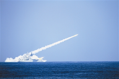 10月17日,导弹驱逐舰139舰实射导弹。当日,海军北海舰队动用各型水面舰艇和潜艇100余艘,飞机30余架,以及部分岸导岸基雷达、观通、电子对抗兵力,在黄海海域展开复杂电磁环境下导弹实射研练。研练中,实射各型导弹、激光制导炸弹和导弹靶弹多枚。 (新华社记者 王东明 摄)