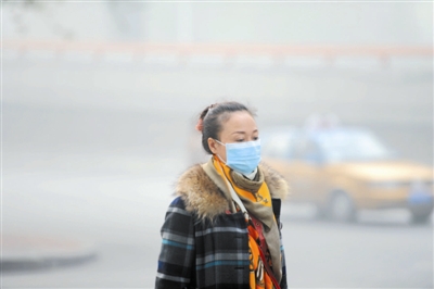 10月21日,哈尔滨市民在雾霾中前行。21日清晨,哈尔滨出现重度雾霾天气,一些市区能见度已不足50米,全市中小学停课,部分公交线路暂时停止运营,多条高速公路全线封闭。 (新华社记者 王松 摄)