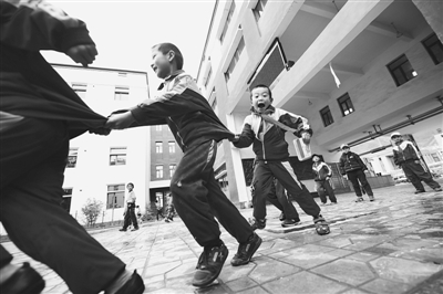 玉树藏族自治州玉树市红旗小学学生在新校园内玩耍(9月26日摄)。