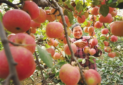 10月27日,山亭区九老庄村农民赵延凤在自家果园内采摘苹果。眼下正是山亭区1万多亩山地苹果丰收的季节,果农们正忙着将苹果采收装箱,准备出售。近年来,山亭区农民因地制宜,在山坡上种植优质红富士苹果,取得了良好的经济效益。 (李宗宪 刘凌娥 摄)