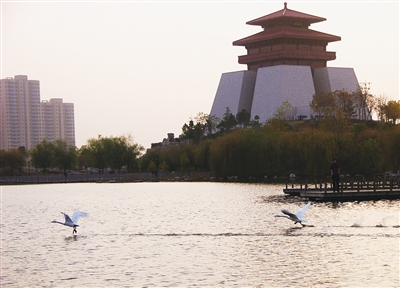 市中区水环境质量不断改善,引来美丽白天鹅在东湖驻留多日。据最新数据,市中区出境断面水质达地表水Ⅲ类标准,东湖COD为18,氨氮为0.78,非常适宜天鹅和鱼类生存。图为11月15日傍晚驻留在东湖的天鹅。 (颜海波 摄)