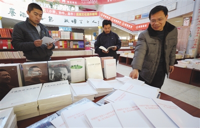 11月29日,在鲁南书城,《十八届三中全会会议公报》单行本及其他相关辅导读物放在最醒目的位置,以满足广大党员干部和市民学习需求。据了解,十八届三中全会文件及学习辅导读物由人民出版社出版,主要包括4种文件类图书和2种学习辅导类读物。 (记者 张晶 摄)