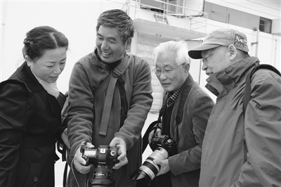 为提升枣庄风景名胜区的影响力,近日,市摄影家协会组织从影多年的老摄影家到我市风景区内创作采风,用手中的相机记录景区的美丽风光。图为摄影家们在交流拍摄技巧。 (记者 张磊 摄)