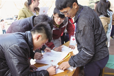枣庄学院和市中心血站于国际志愿者日前夕,联合举行了“纪念第28个国际志愿者日献血车进校园”活动,此次活动得到学生们的积极响应和广泛参与,短短5个多小时共有240名学生献血57800毫升。 (彭宪玲 黄云瑞 摄)
