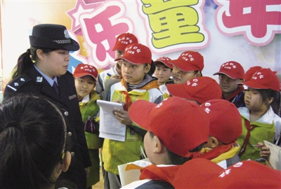连日来, 来自市中区司法系统的干警走进各中小学校开展冬季普法宣讲活动,干警们通过解读一个个触目惊心的青少年犯罪案例,为师生作了一场“雪中送炭”的法制报告会。图为12月6日,干警在文化路小学作报告后热情回答枣庄日报小记者的提问。 (张运祥 张树茂 摄)