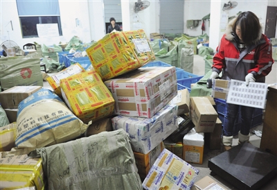 →12月19日,浙江省临安市一家快递公司的工作人员在分拣包裹。国家邮政局12月19日发布的信息显示,11月我国单月快递业务量创造了10.9亿件的新高。 (新华社发)