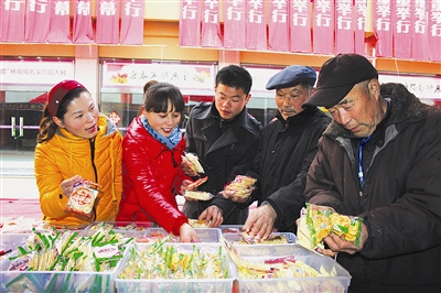 1月10日,市民在年博会上购买年货。当日,第四届全国年货购物节暨第二届滕州年货博览会开幕。此次年博会由市商务局、枣庄日报社、滕州市商务局等单位主办,枣庄日报·《今日滕州》,山东世茂实业有限公司承办。本届年博会从1月8日开始至1月26日结束,除了丰富的年货商品,还精心准备了多项文化主题活动。 (侯志龙 摄)