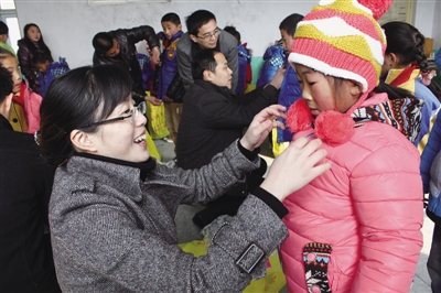 “谢谢阿姨送来的爱心包裹,春节我们也有新衣服穿了!”接受爱心包裹的留守儿童向爱心人士表达他们的谢意。春节临近,山亭团区委联合爱心人士为凫城镇西滴水村小学20多名留守儿童赠送了羽绒服、棉帽、手套等爱心包裹,把温暖送到留守儿童心中。(记者 张晶 通讯员 王启蒙 摄)
