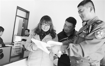 峄城区交通运输部门积极开展“微笑服务,温馨交通”活动,打造优良的营商环境。图为基层工作人员热心为业户释疑解惑。 (记者 张磊 通讯员 孟庆祥 摄)