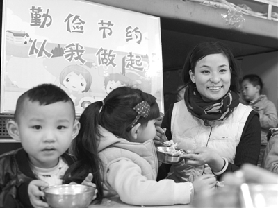 春节临近,为培养儿童勤俭过节的好习惯,市实验幼儿园开展了“勤俭节约 从我做起”系列活动,受到家长的好评。图为孩子们在用餐时比赛,看谁“不挑食、不剩饭”。 (记者 张磊 摄)