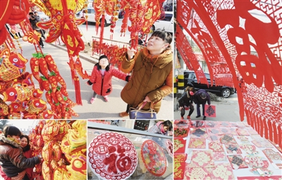 ←1月27日,市民正选购春联和节日饰品。马年春节临近,春联、饰品市场火爆,市民争相购买来装扮家居,喜迎春节。