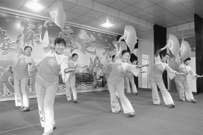 图①:为峄城区坛山街道徐楼社区艺术团的演员在排练舞蹈《社区秧歌情》。(孙启路 李佳法 摄)