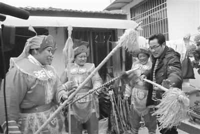 图②:薛城区沙沟镇郭洼村庄户剧团正在紧锣密鼓地彩排,演员们个个精神奕奕,赢得“先睹为快”的村民阵阵掌声和喝彩。 (魏广运 摄)