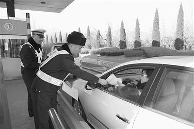 1月21日,京台高速枣庄路政大队与高速交警大队联合开展春运宣传,他们在收费站处发放《致驾驶员的一封信》,提醒“带文明上路,携平安回家”,同时,还送上新春的祝福。 (王爱华 王树勤 摄)