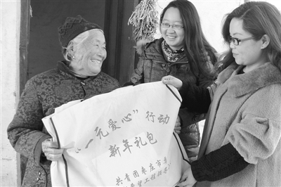 为帮助更多的孤寡老人解决生活中的实际困难,新春期间,峄城团区委为全区百位孤寡老人送去了饱含爱心关怀的“一元爱心新年礼包”,使他们深切感受到了党和政府的温暖。 (记者 张晶 摄)
