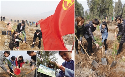 上图:3月9日,团市委组织500余名团员青年到滕州义务植树,当天共栽下5000余株树苗。