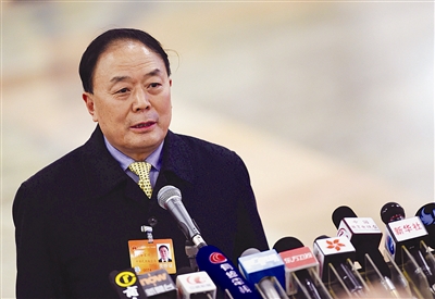 图为李家祥在北京人民大会堂接受采访。(新华社记者 金良快 摄)