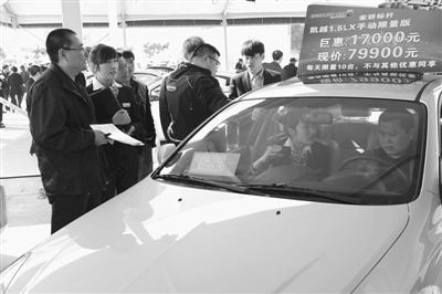 3月22日上午,我社主办的2014春季汽车文化节在光明广场举办,现场市民络绎不绝。图为 市民正在咨询自己心仪的汽车。 (记者 赵宁 摄)