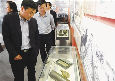 4月30日,市民在铁道游击队展览馆参观。当日,位于我市全民健身中心中兴阁内的铁道游击队展览馆开馆,展出铁道游击队相关文物和史料,吸引不少市民前往参观,接受爱国主义和革命英雄主义教育。 (记者 刘品 摄)