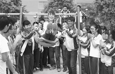 5月7日,江西宜黄县第一中学高三(1)班学生在进行室外活动。2014年高考临近,宜黄县第一中学组织高三学生参加各种户外体育和室内健身活动,帮助学生们释放紧张情绪,轻松迎接高考。 (新华社记者 周科 摄)