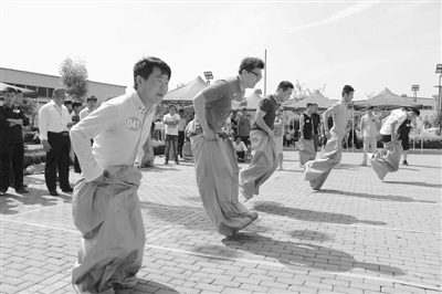 5月23日,农民运动队员在参加袋鼠跳比赛现场。当日,山亭区第一届农民运动会举行,来自全区各镇(街)办事处、机关代表队共计200余人参加了袋鼠跳、跳绳、拔河等农民运动会。 (王启蒙 陈永 摄)