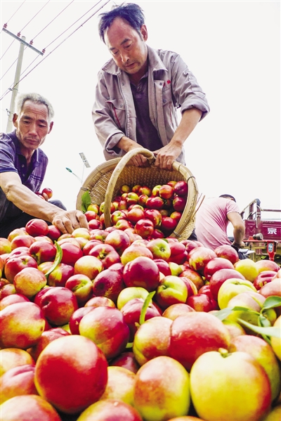 6月5日,水泉镇农民在果品市场销售油桃。进入6月份,山亭区水泉镇种植的5300余亩“露天油桃”陆续成熟上市。因该镇油桃种植在户外的山间田野,被当地果农称为“露天油桃”,这种油桃采用穴贮肥水、生物治虫等标准化生产技术,个大、色艳、品质佳,备受到客商青睐。 (刘明祥 摄)