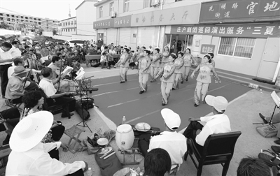 5月28日,锦龙“庄户剧团”服务三夏首场演出在光明路街道官地村举行。 该“庄户剧团”成员全部为退休人员和文艺爱好者,他们把“三夏”防火、农业安全生产常识以及农村新人、新事、新气象自编成群众喜闻乐见的文艺节目,“三夏”期间走村串乡为农民义务演出。 (吉喆 耿德刚 摄)