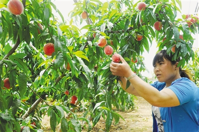 6月6日,榴园镇林桥村农民在采摘鲜桃准备上市。近年来,峄城区大力发展现代设施农业,形成了鲜桃、草莓、葡萄等特色品种的规模化种植,成为当地农民增收致富的新途径。 (孙启路 孙伟 摄)