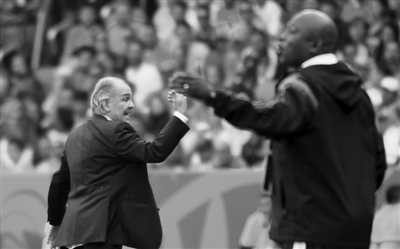 6月25日,阿根廷队主教练亚·萨维利亚(左)和尼日利亚主教练斯·凯西在场边指挥。