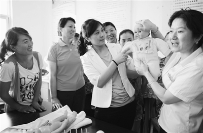 6月25日,家政公司导师在峄城区阴平镇斜屋村为村民进行免费家政培训。今年4月份,市纪委下派到斜屋村担任第一书记的刘媛媛(左三),了解到该村妇女主要种植大枣、空余时间多的实际后,主动联系邀请家政导师对村民进行免费家庭护理等相关技能培训,提高妇女增收致富的能力。 (记者 张晶 摄)