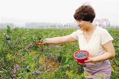 进入6月下旬, 峄城区立富生态农林科技公司种植的260余亩蓝莓陆续成熟,引来游客观光采摘。近年来,峄城区大力发展现代设施农业,形成了蓝莓、草莓、葡萄等特色品种的规模化种植,成为当地农民增收致富的新途径。