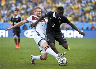 7月4日,德国队以1比0战胜法国队,晋级四强。