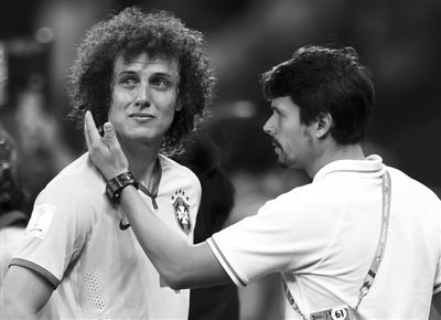 巴西队队长大·路易斯(左)在比赛后泪流满面。