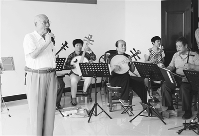 日前,市京剧票友协会邀请徐州、淮北、济南等三省六市京剧票友来枣参加联谊活动。60多位票友从40岁上下到93岁老中青咸集,共演出传统京剧和现代戏名剧名段60余首,既展示了票友精湛的演唱水平、切磋了演唱和伴奏技艺,又加深了各地票友的感情。图为93岁票友陈一灿在演唱《望江亭》。 (王学俊 摄)