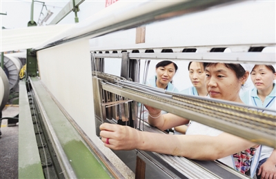 → 7月15日,参赛选手正在进行穿经工比赛。当日,全省纺织行业穿经工职业技能大赛暨全国选拔赛开幕式在山东万泰创业投资有限公司举行,竞赛项目分为理论考核与技能操作,共有来自全省的28名选手参赛。 (记者 刘品 摄)