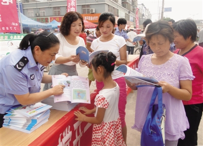 7月17日,峄城区阴平镇利用逢大集的时机,开展了“预防溺水 珍爱生命”夏季防溺水警示专题教育活动。通过设置安全宣传点、摆放宣传图版、印制发放游泳知识漫画书和明白纸等形式,提醒警示青少年、家长和公众认识到溺水的严重性、危害性。图为工作人员讲解并发放游泳知识漫画书。 (苏新伟 摄)